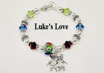 "This bracelet is made of sterling silver beads and Swarovski crystals with a sterling silver childrens charm. $10.00 from the sale of this bracelet is donated to The Luke Vincent Powers Boundless Playground® Project. Please join us in our quest to bring all children, no matter what their abilities, to a place in our community where they can play, grow, learn and laugh together."