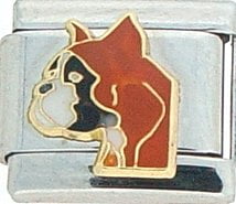 It’s raining cats and dogs! This Boxer Italian charm is handcrafted of 18K gold, enamel and stainless steel and is compatible with all well known manufactures including Zoppini Firenze, Boxing, Uno Domani, Talexia, Carisma, Puzzle and Dolce Oro; and officially licensed charms from Casa D’Oro and ReFlorence which includes SpongeBob charms, Walt Disney charms, Charlie Brown and Snoopy charms and Scooby Doo charms. This is a medium size charm that fits all medium size bracelets.