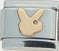 Animal Planet! This Bunny Playboy Gold Italian charm is handcrafted of 18K gold, enamel and stainless steel and is compatible with all well known manufacturers including Zoppini Firenze, Boxing, UnoDomani, Talexia, Carisma, Puzzle and Dolce Oro; and officially licensed charms from Casa D’Oro and ReFlorence which includes SpongeBob charms, Walt Disney charms, Charlie Brown and Snoopy charms and Scooby Doo charms. Look for animal Italian charms from all over the world representing such countries as China, Australia and Africa. Look for our endangered species collection which includes the gray wolf, black and white panda, sea otter and gray seal Italian charms.. This is a medium size charm that fits all medium sized bracelets.