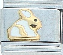 Animal Planet! This Bunny White Italian charm is handcrafted of 18K gold, enamel and stainless steel and is compatible with all well known manufacturers including Zoppini Firenze, Boxing, UnoDomani, Talexia, Carisma, Puzzle and Dolce Oro; and officially licensed charms from Casa D’Oro and ReFlorence which includes SpongeBob charms, Walt Disney charms, Charlie Brown and Snoopy charms and Scooby Doo charms. Look for animal Italian charms from all over the world representing such countries as China, Australia and Africa. Look for our endangered species collection which includes the gray wolf, black and white panda, sea otter and gray seal Italian charms.. This is a medium size charm that fits all medium sized bracelets.