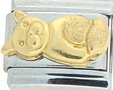It’s raining cats and dogs! This Cat Raised Gold Italian charm is handcrafted of 18K gold, enamel and stainless steel and is compatible with all well known manufactures including Zoppini Firenze, Boxing, Uno Domani, Talexia, Carisma, Puzzle and Dolce Oro; and officially licensed charms from Casa D’Oro and ReFlorence which includes SpongeBob charms, Walt Disney charms, Charlie Brown and Snoopy charms and Scooby Doo charms. This is a medium size charm that fits all medium size bracelets.