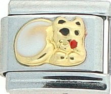 It’s raining cats and dogs! This Cat with White Back Italian charm is handcrafted of 18K gold, enamel and stainless steel and is compatible with all well known manufactures including Zoppini Firenze, Boxing, Uno Domani, Talexia, Carisma, Puzzle and Dolce Oro; and officially licensed charms from Casa D’Oro and ReFlorence which includes SpongeBob charms, Walt Disney charms, Charlie Brown and Snoopy charms and Scooby Doo charms. This is a medium size charm that fits all medium size bracelets.