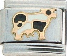 Animal Planet! This Cow Italian charm is handcrafted of 18K gold, enamel and stainless steel and is compatible with all well known manufacturers including Zoppini Firenze, Boxing, UnoDomani, Talexia, Carisma, Puzzle and Dolce Oro; and officially licensed charms from Casa D’Oro and ReFlorence which includes SpongeBob charms, Walt Disney charms, Charlie Brown and Snoopy charms and Scooby Doo charms. Look for animal Italian charms from all over the world representing such countries as China, Australia and Africa. Look for our endangered species collection which includes the gray wolf, black and white panda, sea otter and gray seal Italian charms.. This is a medium size charm that fits all medium sized bracelets.