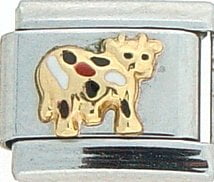 Animal Planet! This Cow Italian charm is handcrafted of 18K gold, enamel and stainless steel and is compatible with all well known manufacturers including Zoppini Firenze, Boxing, UnoDomani, Talexia, Carisma, Puzzle and Dolce Oro; and officially licensed charms from Casa D’Oro and ReFlorence which includes SpongeBob charms, Walt Disney charms, Charlie Brown and Snoopy charms and Scooby Doo charms. Look for animal Italian charms from all over the world representing such countries as China, Australia and Africa. Look for our endangered species collection which includes the gray wolf, black and white panda, sea otter and gray seal Italian charms.. This is a medium size charm that fits all medium sized bracelets.