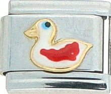 Animal Planet! This Duck Italian charm is handcrafted of 18K gold, enamel and stainless steel and is compatible with all well known manufacturers including Zoppini Firenze, Boxing, UnoDomani, Talexia, Carisma, Puzzle and Dolce Oro; and officially licensed charms from Casa D’Oro and ReFlorence which includes SpongeBob charms, Walt Disney charms, Charlie Brown and Snoopy charms and Scooby Doo charms. Look for animal Italian charms from all over the world representing such countries as China, Australia and Africa. Look for our endangered species collection which includes the gray wolf, black and white panda, sea otter and gray seal Italian charms.. This is a medium size charm that fits all medium sized bracelets.