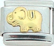 Animal Planet! This Elephant Italian charm is handcrafted of 18K gold, enamel and stainless steel and is compatible with all well known manufacturers including Zoppini Firenze, Boxing, UnoDomani, Talexia, Carisma, Puzzle and Dolce Oro; and officially licensed charms from Casa D’Oro and ReFlorence which includes SpongeBob charms, Walt Disney charms, Charlie Brown and Snoopy charms and Scooby Doo charms. Look for animal Italian charms from all over the world representing such countries as China, Australia and Africa. Look for our endangered species collection which includes the gray wolf, black and white panda, sea otter and gray seal Italian charms.. This is a medium size charm that fits all medium sized bracelets.