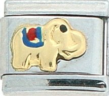 Animal Planet! This Elephant Italian charm is handcrafted of 18K gold, enamel and stainless steel and is compatible with all well known manufacturers including Zoppini Firenze, Boxing, UnoDomani, Talexia, Carisma, Puzzle and Dolce Oro; and officially licensed charms from Casa D’Oro and ReFlorence which includes SpongeBob charms, Walt Disney charms, Charlie Brown and Snoopy charms and Scooby Doo charms. Look for animal Italian charms from all over the world representing such countries as China, Australia and Africa. Look for our endangered species collection which includes the gray wolf, black and white panda, sea otter and gray seal Italian charms.. This is a medium size charm that fits all medium sized bracelets.