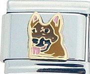 It’s raining cats and dogs! This German Shepherd Italian charm is handcrafted of 18K gold, enamel and stainless steel and is compatible with all well known manufactures including Zoppini Firenze, Boxing, Uno Domani, Talexia, Carisma, Puzzle and Dolce Oro; and officially licensed charms from Casa D’Oro and ReFlorence which includes SpongeBob charms, Walt Disney charms, Charlie Brown and Snoopy charms and Scooby Doo charms. This is a medium size charm that fits all medium size bracelets.