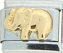 Animal Planet! This Gold Elephant Italian charm is handcrafted of 18K gold, enamel and stainless steel and is compatible with all well known manufacturers including Zoppini Firenze, Boxing, UnoDomani, Talexia, Carisma, Puzzle and Dolce Oro; and officially licensed charms from Casa D’Oro and ReFlorence which includes SpongeBob charms, Walt Disney charms, Charlie Brown and Snoopy charms and Scooby Doo charms. Look for animal Italian charms from all over the world representing such countries as China, Australia and Africa. Look for our endangered species collection which includes the gray wolf, black and white panda, sea otter and gray seal Italian charms.. This is a medium size charm that fits all medium sized bracelets.