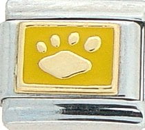 Animal Planet! This Gold Paw on Yellow Italian charm is handcrafted of 18K gold, enamel and stainless steel and is compatible with all well known manufacturers including Zoppini Firenze, Boxing, UnoDomani, Talexia, Carisma, Puzzle and Dolce Oro; and officially licensed charms from Casa D’Oro and ReFlorence which includes SpongeBob charms, Walt Disney charms, Charlie Brown and Snoopy charms and Scooby Doo charms. Look for animal Italian charms from all over the world representing such countries as China, Australia and Africa. Look for our endangered species collection which includes the gray wolf, black and white panda, sea otter and gray seal Italian charms.. This is a medium size charm that fits all medium sized bracelets.