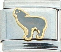 Animal Planet! This Grey Bear Italian charm is handcrafted of 18K gold, enamel and stainless steel and is compatible with all well known manufacturers including Zoppini Firenze, Boxing, UnoDomani, Talexia, Carisma, Puzzle and Dolce Oro; and officially licensed charms from Casa D’Oro and ReFlorence which includes SpongeBob charms, Walt Disney charms, Charlie Brown and Snoopy charms and Scooby Doo charms. Look for animal Italian charms from all over the world representing such countries as China, Australia and Africa. Look for our endangered species collection which includes the gray wolf, black and white panda, sea otter and gray seal Italian charms.. This is a medium size charm that fits all medium sized bracelets.