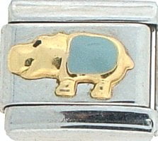 Animal Planet! This Hippopotamus Italian charm is handcrafted of 18K gold, enamel and stainless steel and is compatible with all well known manufacturers including Zoppini Firenze, Boxing, UnoDomani, Talexia, Carisma, Puzzle and Dolce Oro; and officially licensed charms from Casa D’Oro and ReFlorence which includes SpongeBob charms, Walt Disney charms, Charlie Brown and Snoopy charms and Scooby Doo charms. Look for animal Italian charms from all over the world representing such countries as China, Australia and Africa. Look for our endangered species collection which includes the gray wolf, black and white panda, sea otter and gray seal Italian charms.. This is a medium size charm that fits all medium sized bracelets.
