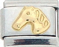 Animal Planet! This Horse Head Italian charm is handcrafted of 18K gold, enamel and stainless steel and is compatible with all well known manufacturers including Zoppini Firenze, Boxing, UnoDomani, Talexia, Carisma, Puzzle and Dolce Oro; and officially licensed charms from Casa D’Oro and ReFlorence which includes SpongeBob charms, Walt Disney charms, Charlie Brown and Snoopy charms and Scooby Doo charms. Look for animal Italian charms from all over the world representing such countries as China, Australia and Africa. Look for our endangered species collection which includes the gray wolf, black and white panda, sea otter and gray seal Italian charms.. This is a medium size charm that fits all medium sized bracelets.