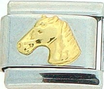 Animal Planet! This Horse Head Gold Italian charm is handcrafted of 18K gold, enamel and stainless steel and is compatible with all well known manufacturers including Zoppini Firenze, Boxing, UnoDomani, Talexia, Carisma, Puzzle and Dolce Oro; and officially licensed charms from Casa D’Oro and ReFlorence which includes SpongeBob charms, Walt Disney charms, Charlie Brown and Snoopy charms and Scooby Doo charms. Look for animal Italian charms from all over the world representing such countries as China, Australia and Africa. Look for our endangered species collection which includes the gray wolf, black and white panda, sea otter and gray seal Italian charms.. This is a medium size charm that fits all medium sized bracelets.