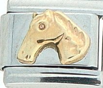 Animal Planet! This Horse Head Gold Italian charm is handcrafted of 18K gold, enamel and stainless steel and is compatible with all well known manufacturers including Zoppini Firenze, Boxing, UnoDomani, Talexia, Carisma, Puzzle and Dolce Oro; and officially licensed charms from Casa D’Oro and ReFlorence which includes SpongeBob charms, Walt Disney charms, Charlie Brown and Snoopy charms and Scooby Doo charms. Look for animal Italian charms from all over the world representing such countries as China, Australia and Africa. Look for our endangered species collection which includes the gray wolf, black and white panda, sea otter and gray seal Italian charms.. This is a medium size charm that fits all medium sized bracelets.