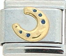 Animal Planet! This Horseshoe with Blue Italian charm is handcrafted of 18K gold, enamel and stainless steel and is compatible with all well known manufacturers including Zoppini Firenze, Boxing, UnoDomani, Talexia, Carisma, Puzzle and Dolce Oro; and officially licensed charms from Casa D’Oro and ReFlorence which includes SpongeBob charms, Walt Disney charms, Charlie Brown and Snoopy charms and Scooby Doo charms. Look for animal Italian charms from all over the world representing such countries as China, Australia and Africa. Look for our endangered species collection which includes the gray wolf, black and white panda, sea otter and gray seal Italian charms.. This is a medium size charm that fits all medium sized bracelets.