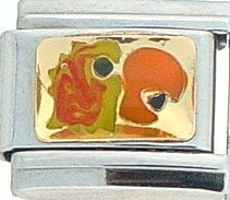 Animal Planet! This Parrot Italian charm is handcrafted of 18K gold, enamel and stainless steel and is compatible with all well known manufacturers including Zoppini Firenze, Boxing, UnoDomani, Talexia, Carisma, Puzzle and Dolce Oro; and officially licensed charms from Casa D’Oro and ReFlorence which includes SpongeBob charms, Walt Disney charms, Charlie Brown and Snoopy charms and Scooby Doo charms. Look for animal Italian charms from all over the world representing such countries as China, Australia and Africa. Look for our endangered species collection which includes the gray wolf, black and white panda, sea otter and gray seal Italian charms.. This is a medium size charm that fits all medium sized bracelets.