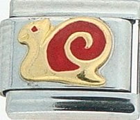 Animal Planet! This Snail Red Italian charm is handcrafted of 18K gold, enamel and stainless steel and is compatible with all well known manufacturers including Zoppini Firenze, Boxing, UnoDomani, Talexia, Carisma, Puzzle and Dolce Oro; and officially licensed charms from Casa D’Oro and ReFlorence which includes SpongeBob charms, Walt Disney charms, Charlie Brown and Snoopy charms and Scooby Doo charms. Look for animal Italian charms from all over the world representing such countries as China, Australia and Africa. Look for our endangered species collection which includes the gray wolf, black and white panda, sea otter and gray seal Italian charms.. This is a medium size charm that fits all medium sized bracelets.