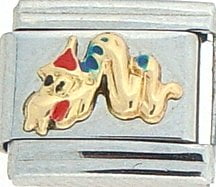 Animal Planet! This Snake Red/Blue/Gold Italian charm is handcrafted of 18K gold, enamel and stainless steel and is compatible with all well known manufacturers including Zoppini Firenze, Boxing, UnoDomani, Talexia, Carisma, Puzzle and Dolce Oro; and officially licensed charms from Casa D’Oro and ReFlorence which includes SpongeBob charms, Walt Disney charms, Charlie Brown and Snoopy charms and Scooby Doo charms. Look for animal Italian charms from all over the world representing such countries as China, Australia and Africa. Look for our endangered species collection which includes the gray wolf, black and white panda, sea otter and gray seal Italian charms.. This is a medium size charm that fits all medium sized bracelets.