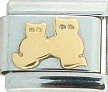 It’s raining cats and dogs! This Two Gold Cats Italian charm is handcrafted of 18K gold, enamel and stainless steel and is compatible with all well known manufactures including Zoppini Firenze, Boxing, Uno Domani, Talexia, Carisma, Puzzle and Dolce Oro; and officially licensed charms from Casa D’Oro and ReFlorence which includes SpongeBob charms, Walt Disney charms, Charlie Brown and Snoopy charms and Scooby Doo charms. This is a medium size charm that fits all medium size bracelets.
