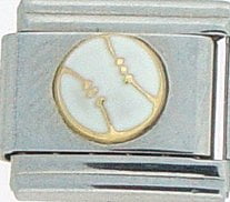 Sports Lovers! This Baseball White Italian charm is handcrafted of 18K gold, enamel and stainless steel and is compatible with such popular manufactures such as Zoppini Firenze, Boxing, UnoDomani, Talexia, Carisma and Puzzle, as well as licensed charms from Casa D'Oro and ReFlorence which includes SpongeBob, Walt Disney, Charlie Brown and Snoopy. This is a medium charm that fits the medium size Italian Charm Bracelet. Look for many more Italian sports charm in our sports section. We also have Pro Sport charms for baseball, hockey, football, basketball and college teams such as Boston Red Sox, New York Yankees, etc. that fit this Italian Composable bracelet.