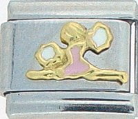 Sports Lovers! This Cheerleader Pink Italian charm is handcrafted of 18K gold, enamel and stainless steel and is compatible with such popular manufactures such as Zoppini Firenze, Boxing, UnoDomani, Talexia, Carisma and Puzzle, as well as licensed charms from Casa D'Oro and ReFlorence which includes SpongeBob, Walt Disney, Charlie Brown and Snoopy. This is a medium charm that fits the medium size Italian Charm Bracelet. Look for many more Italian sports charm in our sports section. We also have Pro Sport charms for baseball, hockey, football, basketball and college teams such as Boston Red Sox, New York Yankees, etc. that fit this Italian Composable bracelet.