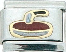 Sports Lovers! This Curling Italian charm is handcrafted of 18K gold, enamel and stainless steel and is compatible with such popular manufactures such as Zoppini Firenze, Boxing, UnoDomani, Talexia, Carisma and Puzzle, as well as licensed charms from Casa D'Oro and ReFlorence which includes SpongeBob, Walt Disney, Charlie Brown and Snoopy. This is a medium charm that fits the medium size Italian Charm Bracelet. Look for many more Italian sports charm in our sports section.We also have Pro Sport charms for baseball, hockey, football, basketball and college teams such as Boston Red Sox, New York Yankees, etc. that fit this Italian Composable bracelet.