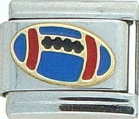 Sports Lovers! This Football Blue Italian charm is handcrafted of 18K gold, enamel and stainless steel and is compatible with such popular manufactures such as Zoppini Firenze, Boxing, UnoDomani, Talexia, Carisma and Puzzle, as well as licensed charms from Casa D'Oro and ReFlorence which includes SpongeBob, Walt Disney, Charlie Brown and Snoopy. This is a medium charm that fits the medium size Italian Charm Bracelet. Look for many more Italian sports charm in our sports section. We also have Pro Sport charms for baseball, hockey, football, basketball and college teams such as Boston Red Sox, New York Yankees, etc. that fit this Italian Composable bracelet.