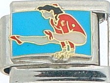 Sports Lovers! This Gymnastics Italian charm is handcrafted of 18K gold, enamel and stainless steel and is compatible with such popular manufactures such as Zoppini Firenze, Boxing, UnoDomani, Talexia, Carisma and Puzzle, as well as licensed charms from Casa D'Oro and ReFlorence which includes SpongeBob, Walt Disney, Charlie Brown and Snoopy. This is a medium charm that fits the medium size Italian Charm Bracelet. Look for many more Italian sports charm in our sports section. We also have Pro Sport charms for baseball, hockey, football, basketball and college teams such as Boston Red Sox, New York Yankees, etc. that fit this Italian Composable bracelet.