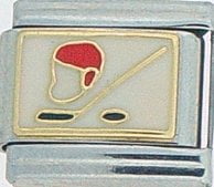 Sports Lovers! This Hockey Italian charm is handcrafted of 18K gold, enamel and stainless steel and is compatible with such popular manufactures such as Zoppini Firenze, Boxing, UnoDomani, Talexia, Carisma and Puzzle, as well as licensed charms from Casa D'Oro and ReFlorence which includes SpongeBob, Walt Disney, Charlie Brown and Snoopy. This is a medium charm that fits the medium size Italian Charm Bracelet. Look for many more Italian sports charm in our sports section. We also have Pro Sport charms for baseball, hockey, football, basketball and college teams such as Boston Red Sox, New York Yankees, etc. that fit this Italian Composable bracelet.