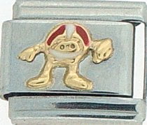 Sports Lovers! This Mascot White & Red Italian charm is handcrafted of 18K gold, enamel and stainless steel and is compatible with such popular manufactures such as Zoppini Firenze, Boxing, UnoDomani, Talexia, Carisma and Puzzle, as well as licensed charms from Casa D'Oro and ReFlorence which includes SpongeBob, Walt Disney, Charlie Brown and Snoopy. This is a medium charm that fits the medium size Italian Charm Bracelet. Look for many more Italian sports charm in our sports section. We also have Pro Sport charms for baseball, hockey, football, basketball and college teams such as Boston Red Sox, New York Yankees, etc. that fit this Italian Composable bracelet.