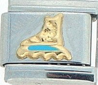 Sports Lovers! This Roller Blade Gold w/Blue Italian charm is handcrafted of 18K gold, enamel and stainless steel and is compatible with such popular manufactures such as Zoppini Firenze, Boxing, UnoDomani, Talexia, Carisma and Puzzle, as well as licensed charms from Casa D'Oro and ReFlorence which includes SpongeBob, Walt Disney, Charlie Brown and Snoopy. This is a medium charm that fits the medium size Italian Charm Bracelet. Look for many more Italian sports charm in our sports section. We also have Pro Sport charms for baseball, hockey, football, basketball and college teams such as Boston Red Sox, New York Yankees, etc. that fit this Italian Composable bracelet.