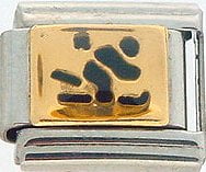Sports Lovers! This Skier Black in Gold Italian charm is handcrafted of 18K gold, enamel and stainless steel and is compatible with such popular manufactures such as Zoppini Firenze, Boxing, UnoDomani, Talexia, Carisma and Puzzle, as well as licensed charms from Casa D'Oro and ReFlorence which includes SpongeBob, Walt Disney, Charlie Brown and Snoopy. This is a medium charm that fits the medium size Italian Charm Bracelet. Look for many more Italian sports charm in our sports section. We also have Pro Sport charms for baseball, hockey, football, basketball and college teams such as Boston Red Sox, New York Yankees, etc. that fit this Italian Composable bracelet.
