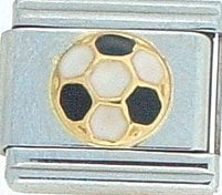 Sports Lovers! This Soccer Ball Italian charm is handcrafted of 18K gold, enamel and stainless steel and is compatible with such popular manufactures such as Zoppini Firenze, Boxing, UnoDomani, Talexia, Carisma and Puzzle, as well as licensed charms from Casa D'Oro and ReFlorence which includes SpongeBob, Walt Disney, Charlie Brown and Snoopy. This is a medium charm that fits the medium size Italian Charm Bracelet. Look for many more Italian sports charm in our sports section. We also have Pro Sport charms for baseball, hockey, football, basketball and college teams such as Boston Red Sox, New York Yankees, etc. that fit this Italian Composable bracelet.