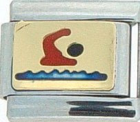 Sports Lovers! This Swimmer Italian charm is handcrafted of 18K gold, enamel and stainless steel and is compatible with such popular manufactures such as Zoppini Firenze, Boxing, UnoDomani, Talexia, Carisma and Puzzle, as well as licensed charms from Casa D'Oro and ReFlorence which includes SpongeBob, Walt Disney, Charlie Brown and Snoopy. This is a medium charm that fits the medium size Italian Charm Bracelet. Look for many more Italian sports charm in our sports section. We also have Pro Sport charms for baseball, hockey, football, basketball and college teams such as Boston Red Sox, New York Yankees, etc. that fit this Italian Composable bracelet.