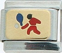 Sports Lovers! This Tennis Player Italian charm is handcrafted of 18K gold, enamel and stainless steel and is compatible with such popular manufactures such as Zoppini Firenze, Boxing, UnoDomani, Talexia, Carisma and Puzzle, as well as licensed charms from Casa D'Oro and ReFlorence which includes SpongeBob, Walt Disney, Charlie Brown and Snoopy. This is a medium charm that fits the medium size Italian Charm Bracelet. Look for many more Italian sports charm in our sports section. We also have Pro Sport charms for baseball, hockey, football, basketball and college teams such as Boston Red Sox, New York Yankees, etc. that fit this Italian Composable bracelet.