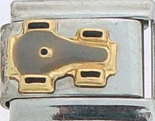 Sports Lovers! This Race Car Italian charm is handcrafted of 18K gold, enamel and stainless steel and is compatible with such popular manufactures such as Zoppini Firenze, Boxing, UnoDomani, Talexia, Carisma and Puzzle, as well as licensed charms from Casa D'Oro and ReFlorence which includes SpongeBob, Walt Disney, Charlie Brown and Snoopy. This is a medium charm that fits the medium size Italian Charm Bracelet. Look for many more Italian sports charm in our sports section. We also have Pro Sport charms for baseball, hockey, football, basketball and college teams such as Boston Red Sox, New York Yankees, etc. that fit this Italian Composable bracelet.