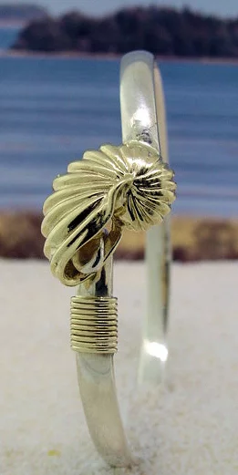 Sterling Silver Bangle with 14K Gold Nautilus Shell Charm.