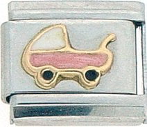 This Baby Carriage Italian charm is handcrafted of 18K gold, enamel and stainless steel and is compatible with all well known manufacturers including Zoppini Firenze, Boxing, UnoDomani, Talexia, Carisma, Puzzle and Dolce Oro; and officially licensed charms from Casa D’Oro and ReFlorence which includes SpongeBob charms, Walt Disney charms, Charlie Brown and Snoopy charms and Scooby Doo charms.