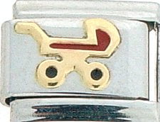 This Baby Carriage Italian charm is handcrafted of 18K gold, enamel and stainless steel and is compatible with all well known manufacturers including Zoppini Firenze, Boxing, UnoDomani, Talexia, Carisma, Puzzle and Dolce Oro; and officially licensed charms from Casa D’Oro and ReFlorence which includes SpongeBob charms, Walt Disney charms, Charlie Brown and Snoopy charms and Scooby Doo charms.