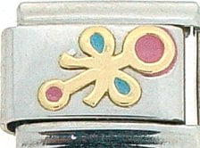This Baby Rattle Italian charm is handcrafted of 18K gold, enamel and stainless steel and is compatible with all well known manufacturers including Zoppini Firenze, Boxing, UnoDomani, Talexia, Carisma, Puzzle and Dolce Oro; and officially licensed charms from Casa D’Oro and ReFlorence which includes SpongeBob charms, Walt Disney charms, Charlie Brown and Snoopy charms and Scooby Doo charms.