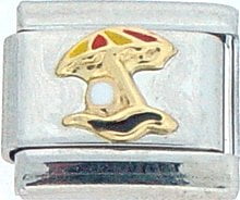 This Beach Umbrella Italian charm is handcrafted of 18K gold, enamel and stainless steel and is compatible with all well known manufacturers including Zoppini Firenze, Boxing, UnoDomani, Talexia, Carisma, Puzzle and Dolce Oro; and officially licensed charms from Casa D’Oro and ReFlorence which includes SpongeBob charms, Walt Disney charms, Charlie Brown and Snoopy charms and Scooby Doo charms.