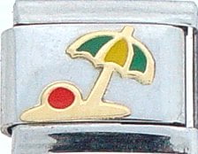 This Beach Umbrella Italian charm is handcrafted of 18K gold, enamel and stainless steel and is compatible with all well known manufacturers including Zoppini Firenze, Boxing, UnoDomani, Talexia, Carisma, Puzzle and Dolce Oro; and officially licensed charms from Casa D’Oro and ReFlorence which includes SpongeBob charms, Walt Disney charms, Charlie Brown and Snoopy charms and Scooby Doo charms.