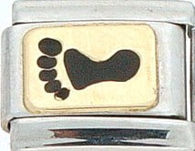 This Black Foot Print Italian charm is handcrafted of 18K gold, enamel and stainless steel and is compatible with all well known manufacturers including Zoppini Firenze, Boxing, UnoDomani, Talexia, Carisma, Puzzle and Dolce Oro; and officially licensed charms from Casa D’Oro and ReFlorence which includes SpongeBob charms, Walt Disney charms, Charlie Brown and Snoopy charms and Scooby Doo charms.