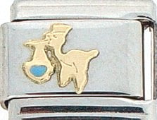 This Blue Stork Italian charm is handcrafted of 18K gold, enamel and stainless steel and is compatible with all well known manufacturers including Zoppini Firenze, Boxing, UnoDomani, Talexia, Carisma, Puzzle and Dolce Oro; and officially licensed charms from Casa D’Oro and ReFlorence which includes SpongeBob charms, Walt Disney charms, Charlie Brown and Snoopy charms and Scooby Doo charms.