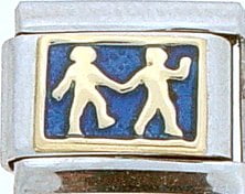 This Boy and Girl Italian charm is handcrafted of 18K gold, enamel and stainless steel and is compatible with all well known manufacturers including Zoppini Firenze, Boxing, UnoDomani, Talexia, Carisma, Puzzle and Dolce Oro; and officially licensed charms from Casa D’Oro and ReFlorence which includes SpongeBob charms, Walt Disney charms, Charlie Brown and Snoopy charms and Scooby Doo charms.