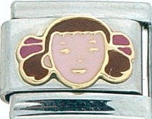 This Girl with Brown Hair Italian charm is handcrafted of 18K gold, enamel and stainless steel and is compatible with all well known manufacturers including Zoppini Firenze, Boxing, UnoDomani, Talexia, Carisma, Puzzle and Dolce Oro; and officially licensed charms from Casa D’Oro and ReFlorence which includes SpongeBob charms, Walt Disney charms, Charlie Brown and Snoopy charms and Scooby Doo charms.
