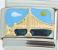 Around the world! This Golden Gate Bridge Italian charm is handcrafted of 18K gold, enamel and stainless steel and is compatible with all well known manufacturers including Zoppini Firenze, Boxing, UnoDomani, Talexia, Carisma, Puzzle and Dolce Oro; and officially licensed charms from Casa D’Oro and ReFlorence which includes SpongeBob charms, Walt Disney charms, Charlie Brown and Snoopy charms and Scooby Doo charms. Look for the Eiffel Tower, Big Ben, Pyramids of Egypt, Rialto Bridge Italian charms among other famous world landmarks to commemorate your trip around the world.