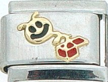 This Jack in the Box Italian charm is handcrafted of 18K gold, enamel and stainless steel and is compatible with all well known manufacturers including Zoppini Firenze, Boxing, UnoDomani, Talexia, Carisma, Puzzle and Dolce Oro; and officially licensed charms from Casa D’Oro and ReFlorence which includes SpongeBob charms, Walt Disney charms, Charlie Brown and Snoopy charms and Scooby Doo charms.