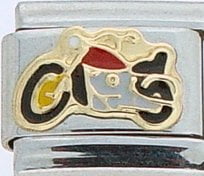 This Motorcycle Italian charm is handcrafted of 18K gold, enamel and stainless steel and is compatible with all well known manufacturers including Zoppini Firenze, Boxing, UnoDomani, Talexia, Carisma, Puzzle and Dolce Oro; and officially licensed charms from Casa D’Oro and ReFlorence which includes SpongeBob charms, Walt Disney charms, Charlie Brown and Snoopy charms and Scooby Doo charms.